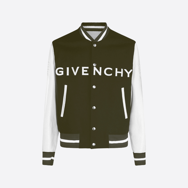ジバンシィ エンブロイダリー レター レザースリーブ パッチワーク ウール ベースボールジャケット > ★ アウター