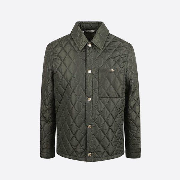 バーバリーの無地キルティングポケットチェックコットンコート、グリーン > ★ アウター