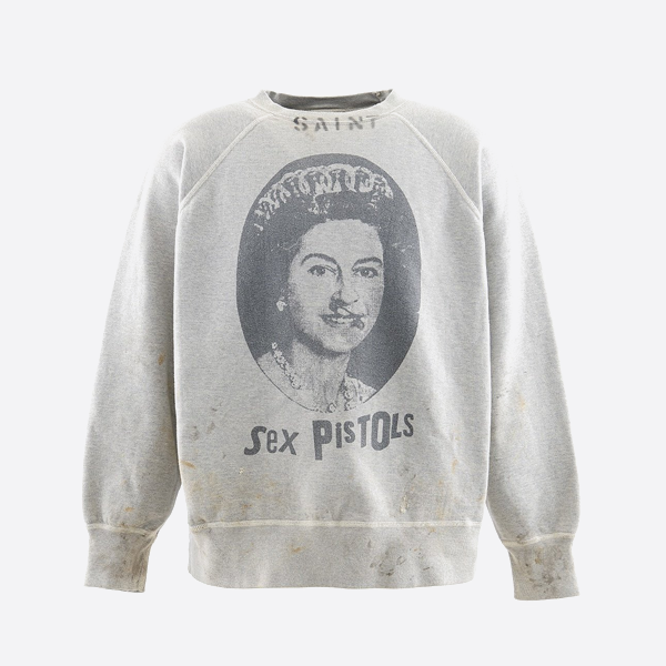 SAINT Mxxxxxx クイーンエリザベス ダメージプリント クルーネック スウェットシャツ > ★ トップス
