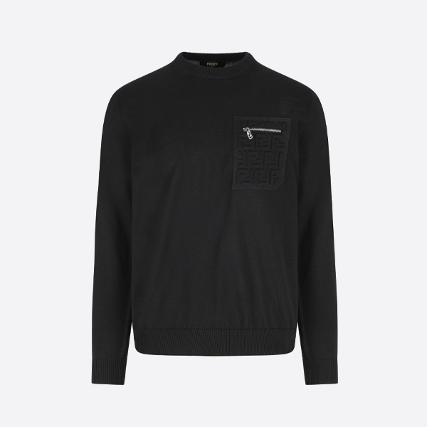 フェンディ ネイビーブルー クルーネック セーター(エンボス加工ポケット付き) > ★ トップス