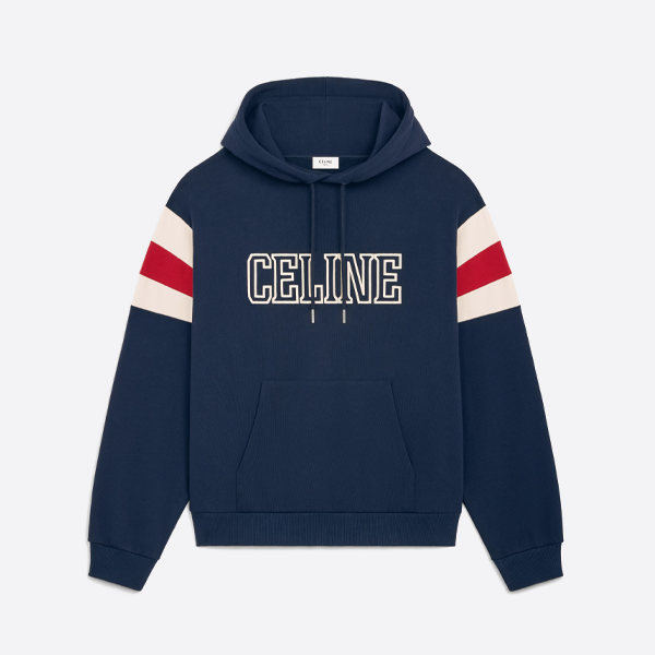 袖と肩にロゴプリントが施されたセリーヌのカラーブロックフード付きスウェットシャツ > ★ トップス