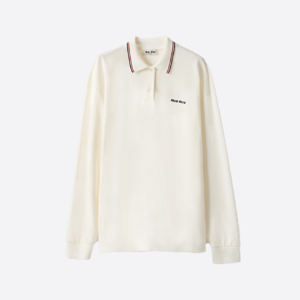 ミュウミュウ 刺繍入りレター レッドストライプカラー 長袖ポロシャツ > ★ トップス